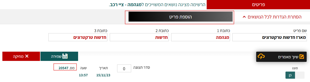 עמודי האתר מאפשרים יצירת מארז ברמה אחרונה.