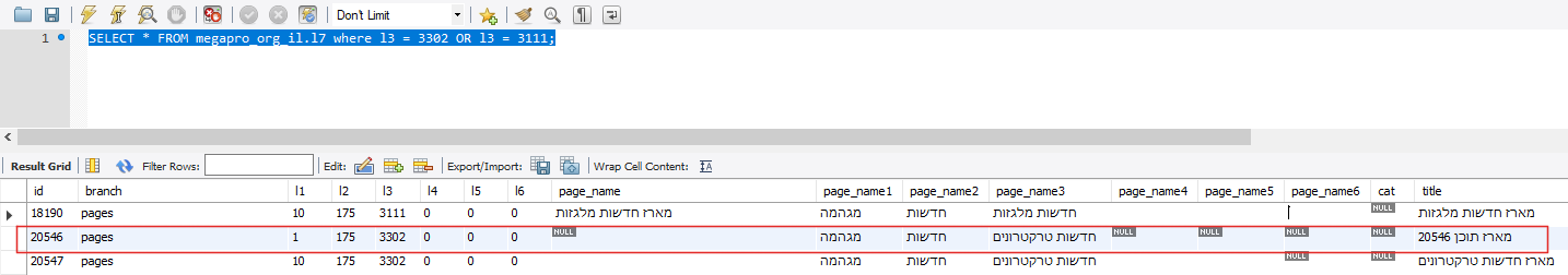 הצילום מציג את רשומה 20546 בבסיס הנתונים שהייתה זו שגרמה לבעיה.